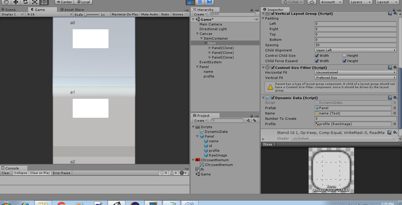 嗨,我的场景名是game.In,那个场景我有一个主板,它的名字是ITEMCONTAINER。在项目容器中,我有一个名为ITEM的面板。我在项目面板中附加了一个脚本。在那个脚本中,我有一个游戏对象公共,一个原始图像,文本和循环将继续多少次是公开的。在游戏对象的位置,我附加了我的预制件,其中包含一个文本和2个and图像。代替文字,我附上文字组件的预制件和相同的原始图像。当我运行游戏时,我得到的文本值是正确的,但是rawimage在runtime.Here中显示为空白,我正在运行我的循环3次,并且所有三次它都创建了我的预置面板的克隆,在itempanel中,我希望在运行时使用rawimage动态。