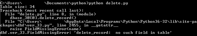 dbf.delete(dbase_30[0])这只会将记录标记为已删除,但实际上并没有删除它。若要删除所有已删除记录,请执行以下操作: