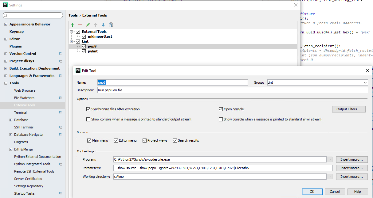 下面是我的定义( pep8工具已被重命名为pycodestyle):