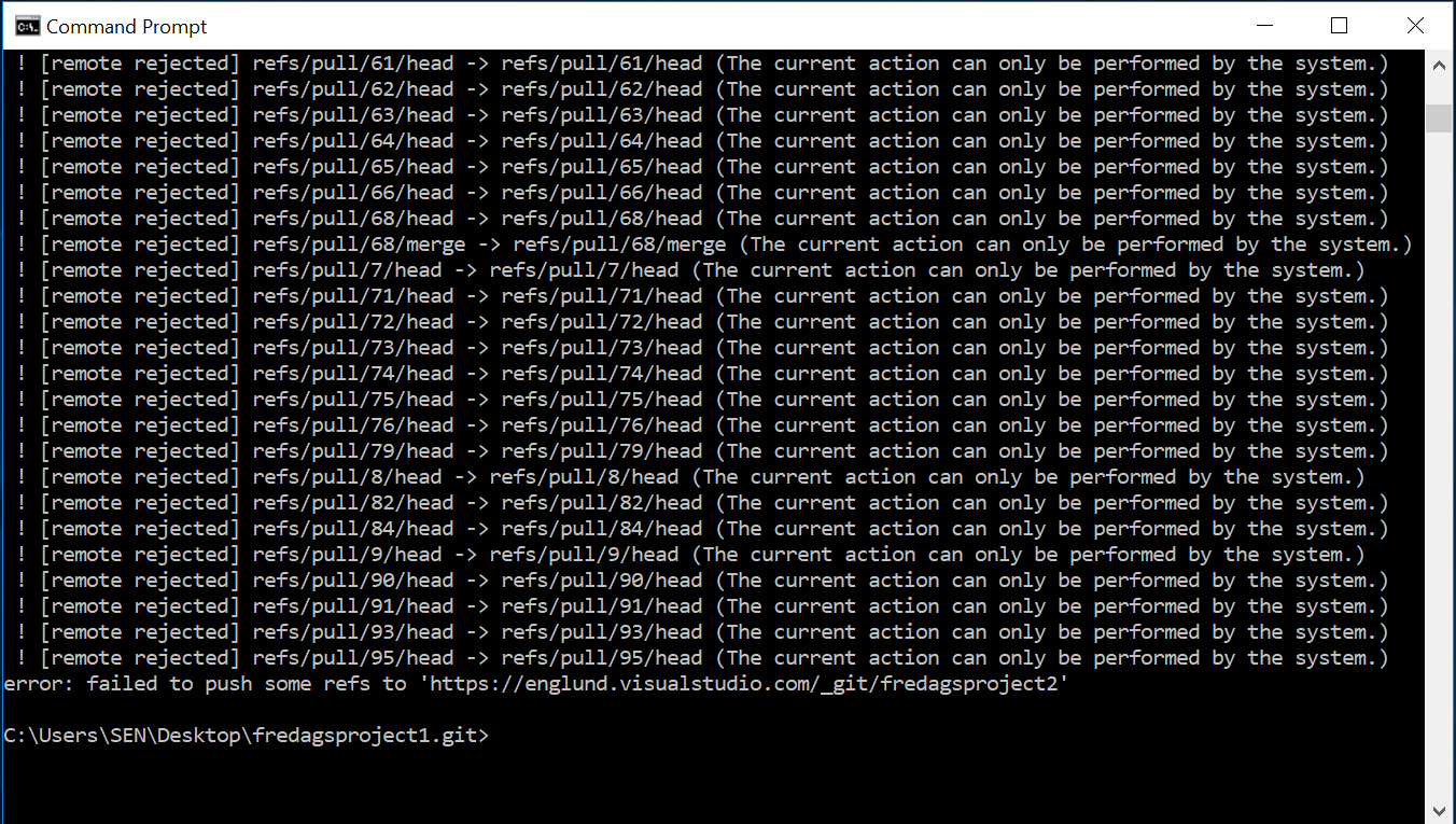[remote rejected] refs/pull/xx/head -> refs/pull/xx/head (The current action can only be performed by the system.)存储库被克隆到我计算机上的一个文件夹中,然后推送到另一个git。所有的文件和历史都是按其应有的方式复制和推送的,但是这个“错误”不断出现。我能做什么?