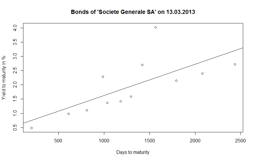 = "Yield to maturity in %", main = "Bonds of 'Societe Generale SA' on