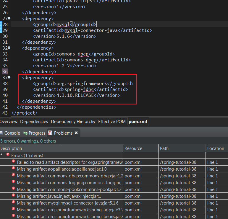 缺失伪影org.springframework:spring-jdbc:jar:4.3.10.RELEASE