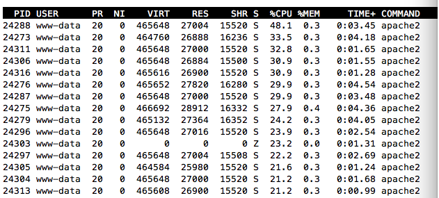 这个CPU的使用是为laravel-5.2的新设置,在这里,我没有做更多的代码,然后是由拉拉(just one defaut welcome page)提供的。如果我把这个页面调用1000次,CPU使用率就会很高。对于post方法,它甚至会变坏,并且服务器停止响应。