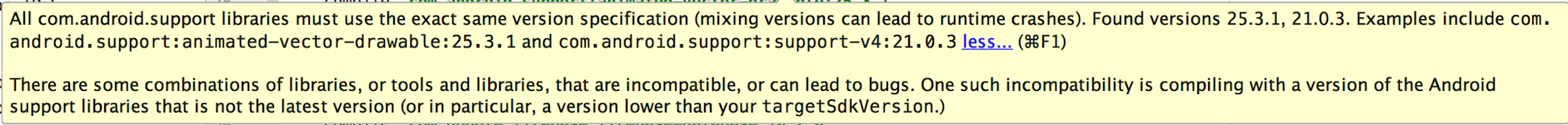 | \--- com.android.support:appcompat-v7:21.0.3 -> 25.3.1 (*)