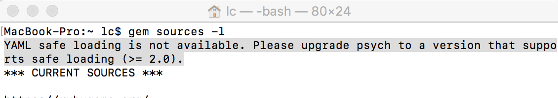 为了安装cocoapods,当在终端中运行gem源-l指令时,它有这样的问题.