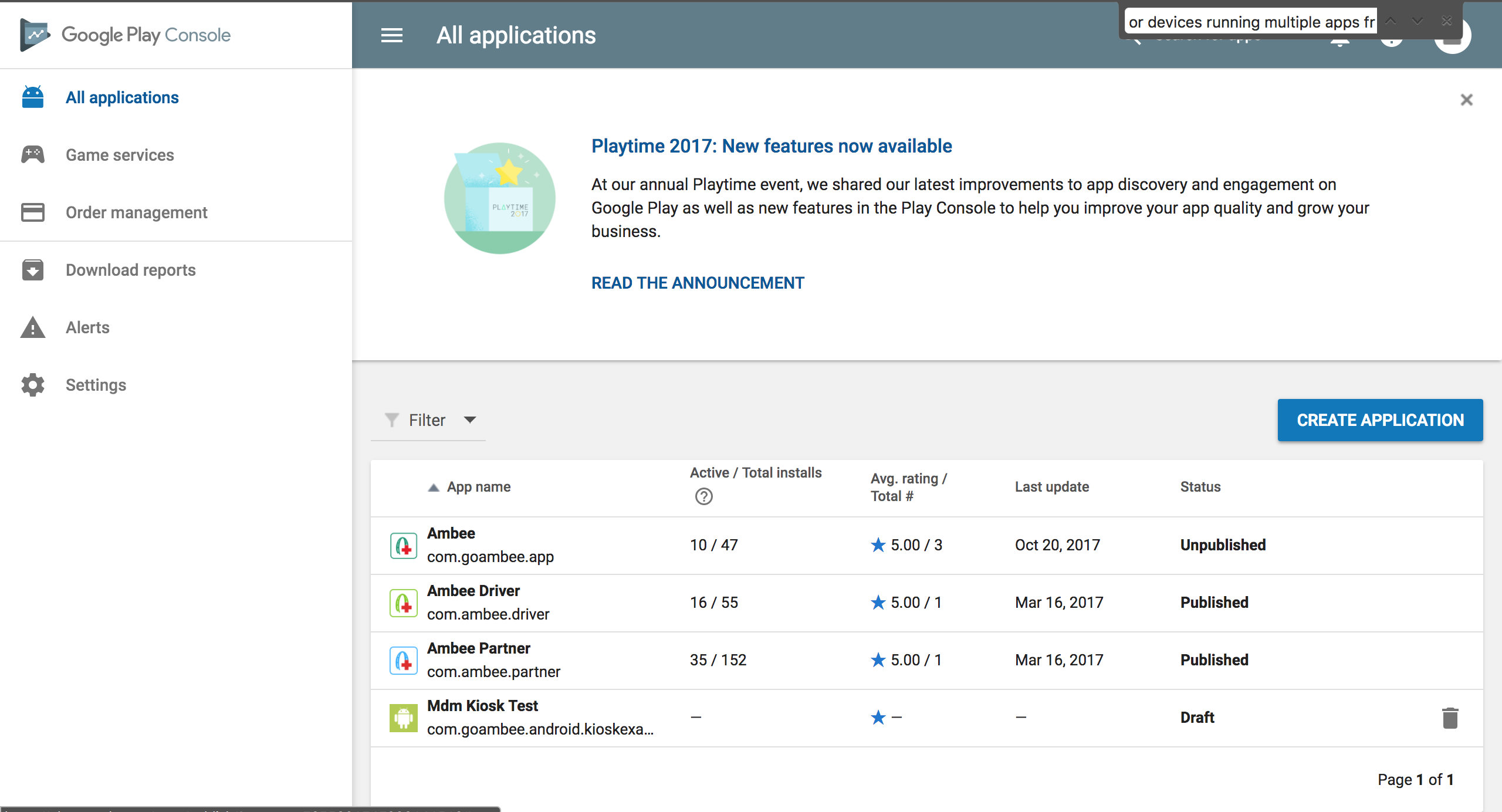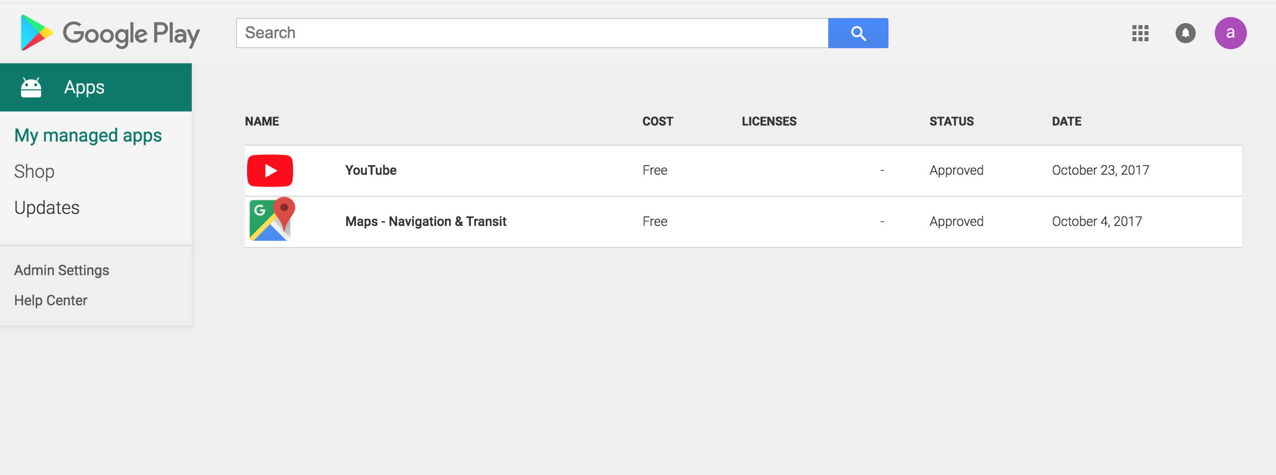 使用安卓管理公司Api QuickStartGuide,弗雷德的建议似乎是正确的。在我的政策是来自自定义启动程序的多个应用程序,现在我陷入困境,我想发布我的启动应用程序或其他应用程序,以发挥商店只为我的企业。