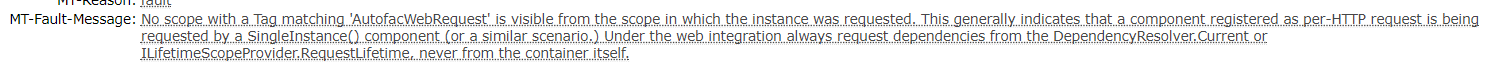 builder.RegisterType<FooService>().As<IFooService>().InstancePerRequest();InstancePerRequest()是导致错误的原因。如果我向builder.RegisterType<FooService>().As<IFooService>()注册服务,一切都很好。我认为这是因为我的总线实例是作为单例(注册为SingleIsntace())工作的。使用web项目托管我的总线/消费者这一事实使我感到困惑。