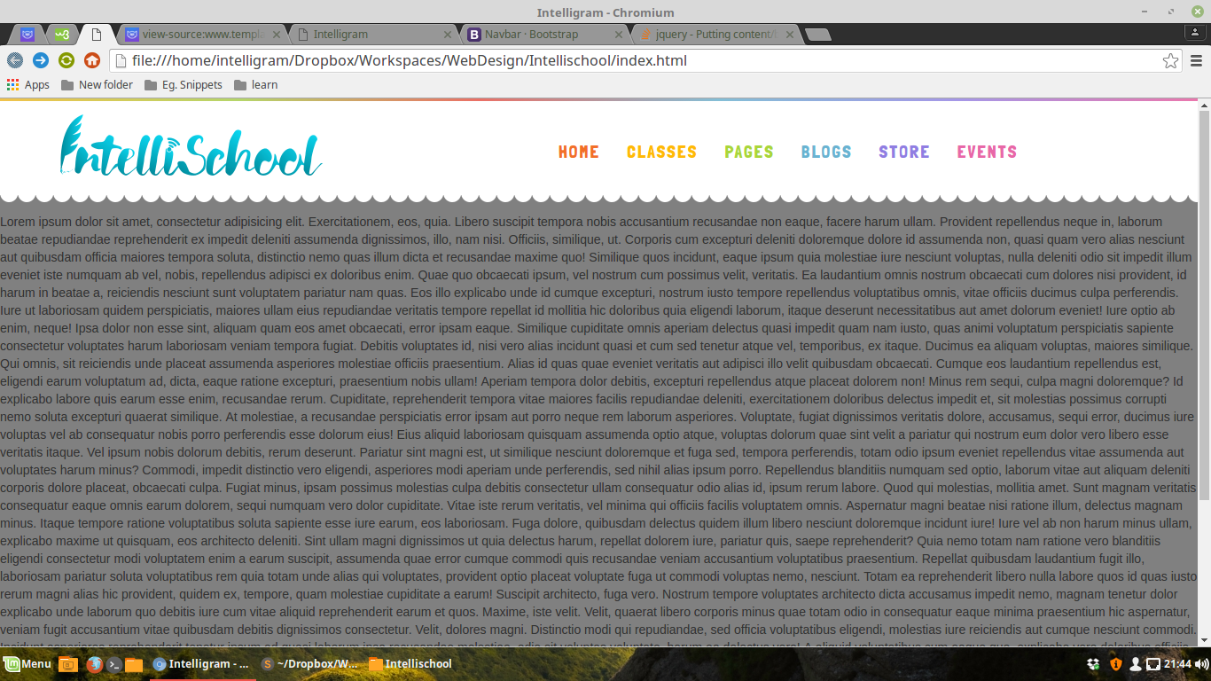 我想我的导航条是肚脐固定顶部。渐变栏应该在导航栏的顶部,就像在附加图像中一样。我尝试过这段代码,但是导航条固定的顶部类隐藏了渐变栏下面的渐变条,并且渐变栏不再可见。我想要一个没有任何jQuery或javascript的纯Css解决方案。