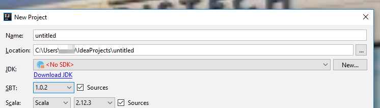 然后,我安装了IntelliJ和Scala插件,所以当我最后要创建我的第一个项目时,我的笔记本配置不是映射JDK: