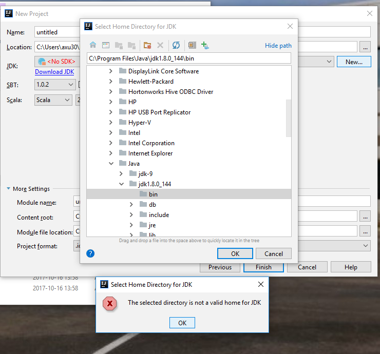我已经在我的计算机中安装了JDKJDK-8u144-windows-x64.exe,以便设置工具IntelliJ来与Scala玩,在转到IntelliJ安装之前,我就确保在我的计算机中安装了JDK: