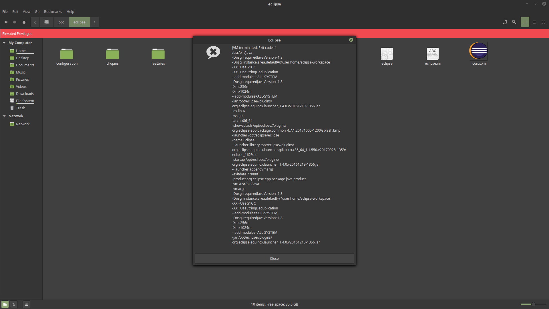 我用openjdk-9在Linux中安装了Eclipse18.2肉桂(请不要告诉我切换了oracle )。每当我单击Eclipse图标时,这个窗口就会显示: