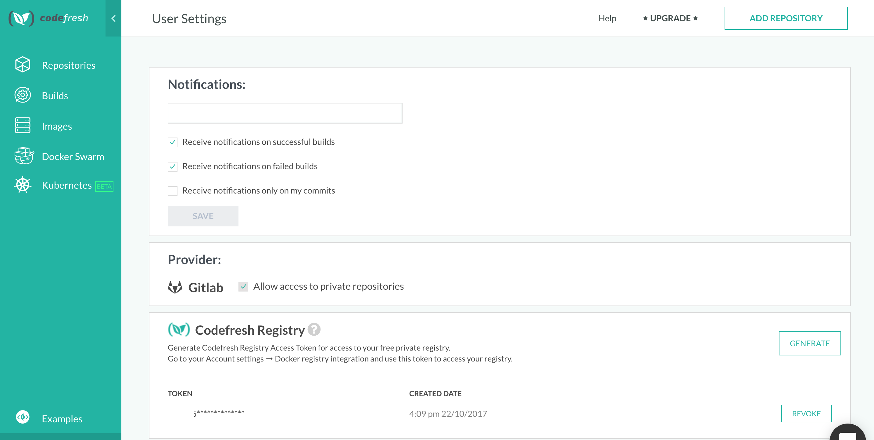 您需要首先在CodeFresh用户设置上生成一个令牌