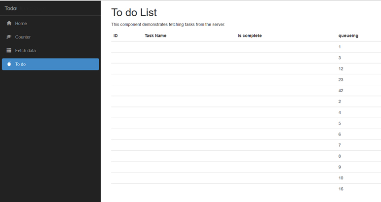 }使用id、taskName和isComplete (小写),如‘排队’属性。