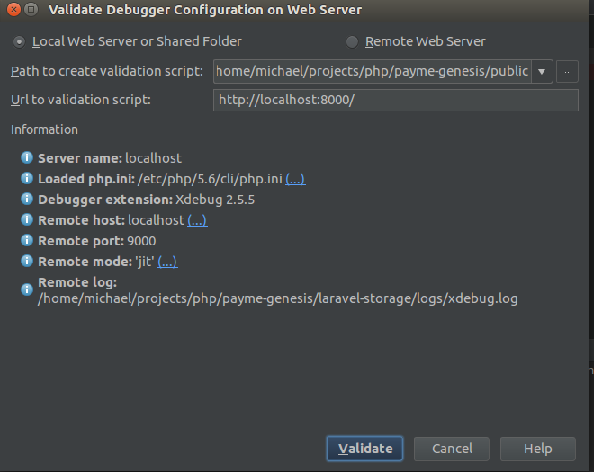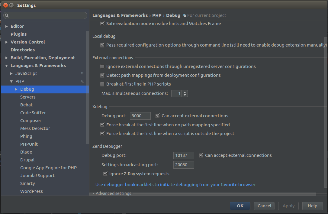 我在使用PhpStorm时遇到了问题,从日志来看,它看起来很好,但是PhpStorm出于某些原因并没有忘记它。此外,如果我从PHP->Debug设置菜单中选中“在PHP脚本的第一行中断”,调试器也可以工作,但是如果我单击“恢复programF9”,它将跳过我的断点,即电话图标(“侦听PHP连接”)