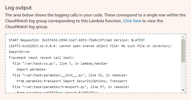 我在python代码中使用模块paramiko,这是一个aws lambda函数。我在python包部署过程中遵循了链接http://docs.aws.amazon.com/lambda/latest/dg/with-s3-example-deployment-pkg.html#with-s3-example-deployment-pkg-python的相同过程。