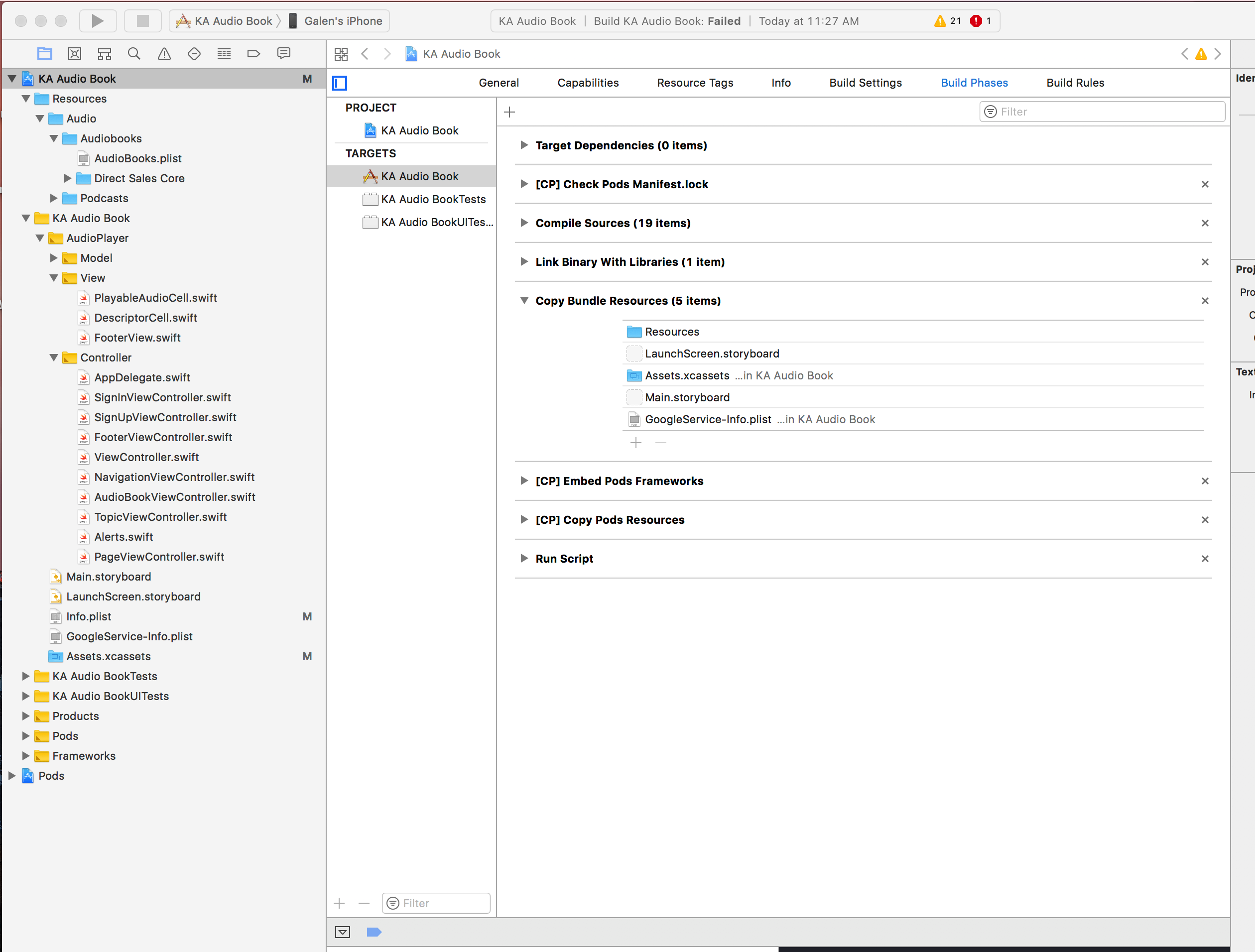 它告诉我在项目目录中本地创建一个资源文件夹,然后在XCode中将该文件夹拖到我的项目中。嗯,我已经有一个资源组,我想要替换,所以我删除了它。在将Resource目录移动并构建我的应用程序后,我会收到以下错误: