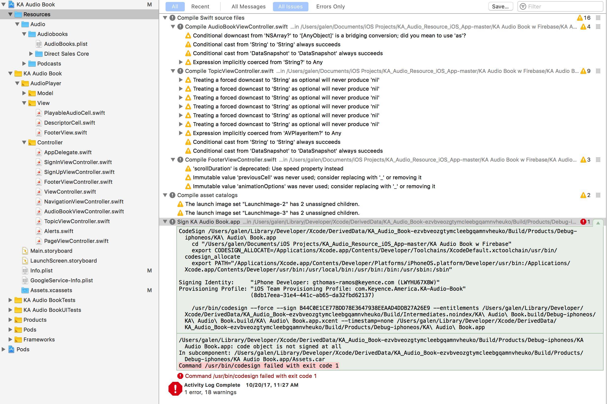 基本上,我必须重新创建Resources组,删除那里的所有资源,然后按照链接线程的答案中的说明进行操作。我第一次删除项目的派生数据文件夹,然后运行xattr -rc。在项目目录中。