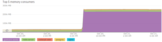然而,几个小时前,我在服务器上尝试python的multiprocessing,结果事情变糟了。Gunicorn的工人们把所有的记忆都消耗掉了,同时也取出了当地的redis实例。