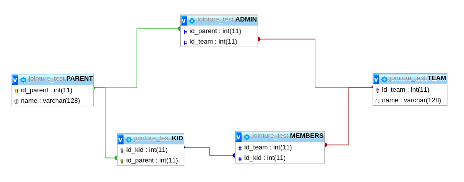 给定一个PARENT.id_parent,如何选择链接到此父级的TEAM.id_team列表(管理员,只是父级或两者兼而有之)。每个TEAM.id_team必须是唯一的,即使父级在团队中有子级并且是管理员。