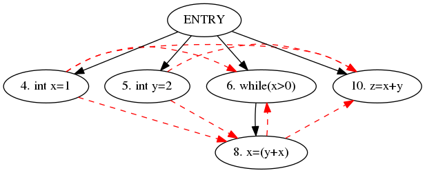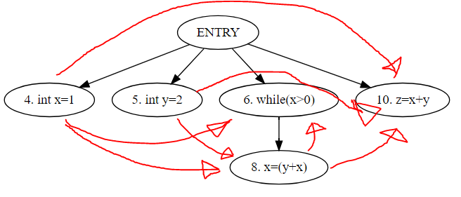 我试图绘制一个PDG,但是当我添加数据依赖项时,它的格式会出现错误。