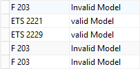 RLIKE '^[ETS 2229]' OR '^[F 202]' then 'valid Model' else 'Invalid Model' end