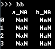 bb=pd.DataFrame(data=pd.isnull(tt).astype(int), index = tt.index,columns=['a','b', 'a_NA','b_NA'] )