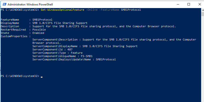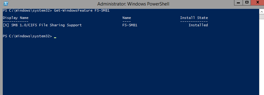我已经检查了两个服务器上的SMB1协议。已经启用了。安装了TeamCity构建代理和TeamCity服务器(OS 10)的服务器: