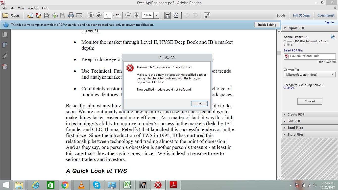 我使用的是MATLAB2017b版本& Interactive版本是9.73 Windows64bit版本。我无法通过命令提示符注册Tws.ocx文件& regsvr32.exe文件。如果我去注册文件,它们会显示一个二进制错误。