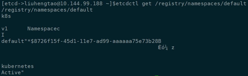 ETCDCTL_API=3 etcdctl get /registry/namespaces/default -w protobuf | protoc --decode_raw输出应该如下所示