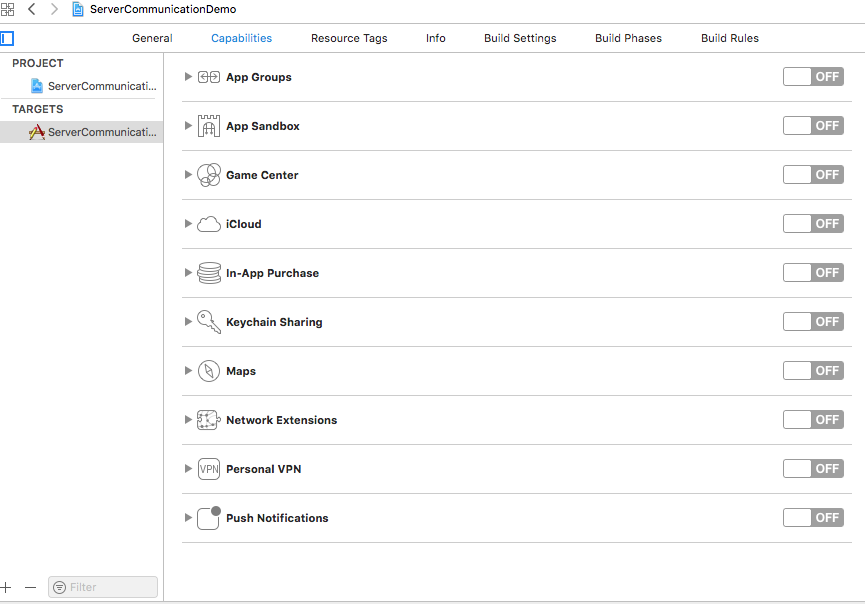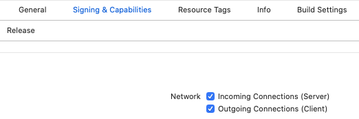 在Xcode 9中有一个名为App Sandbox的新设置,它也可以阻止传入/传出网络连接!我不得不关掉它,然后所有的网络请求都开始工作了。