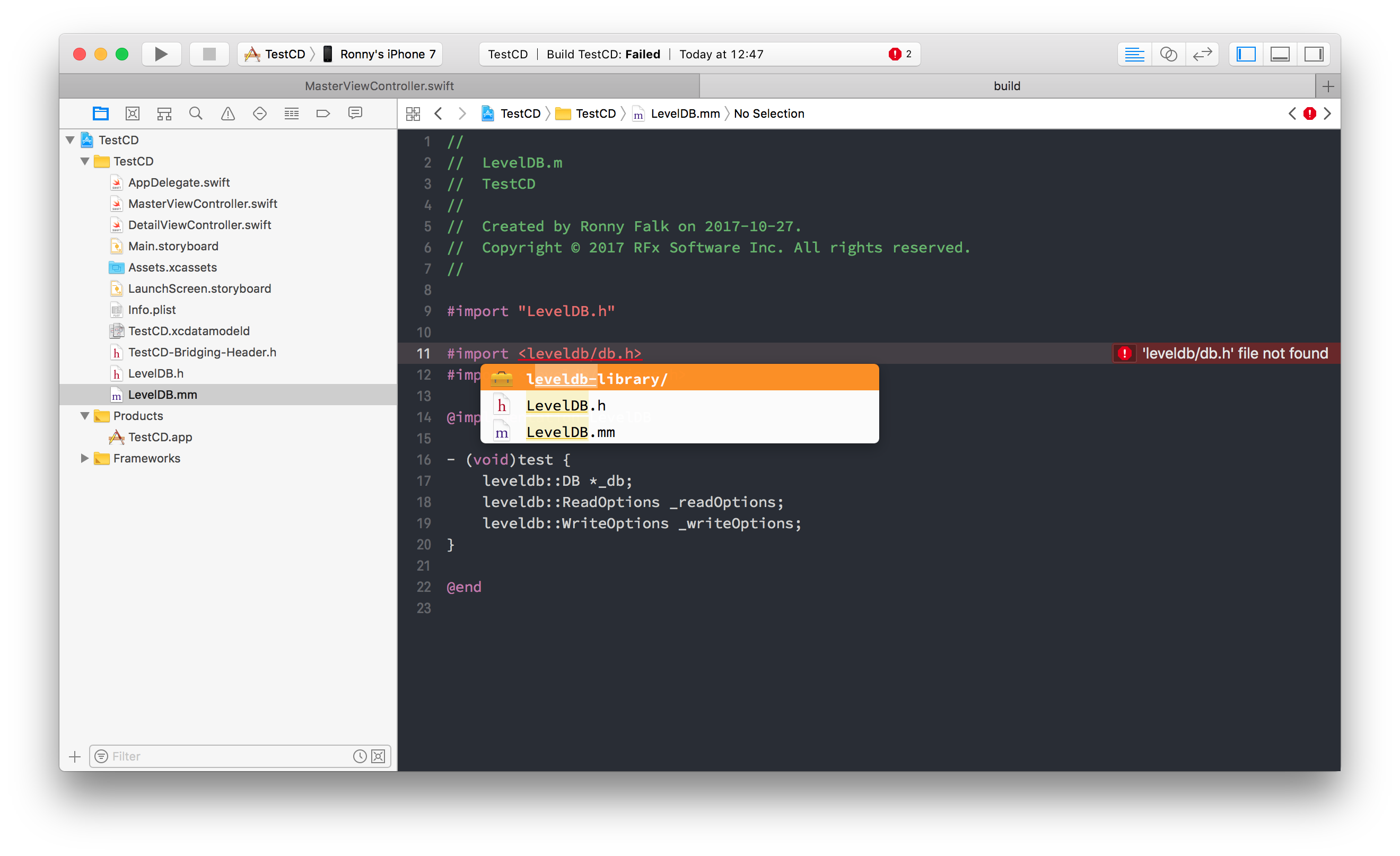 In file included from /Users/ronny/projects/clients/internal/TestCD/TestCD/LevelDB.mm:11: