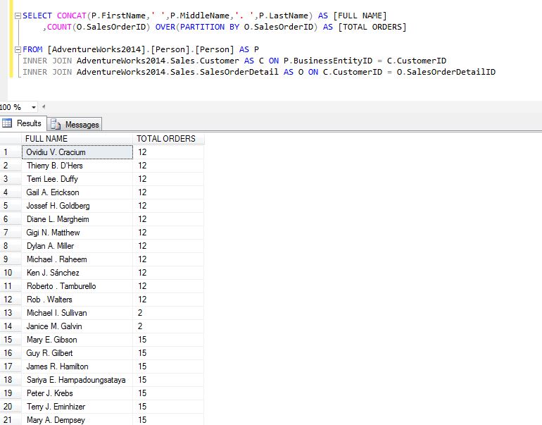 我给你加上了一些新的东西。无论如何,OVER(column_name分区)子句被用作GROUP BY的替换,因为您打印的列比GROUP BY子句所允许的列要多。