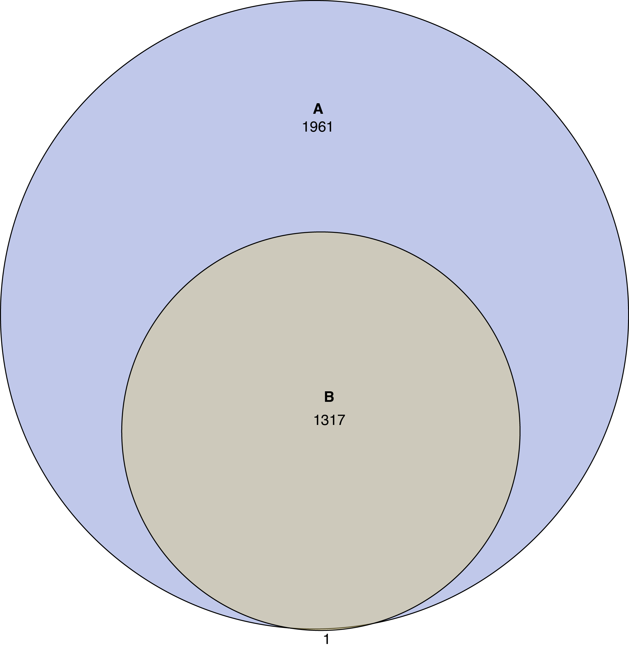 值得注意的是,eulerr认为对A是唯一的值的数量比我使用的值长一倍