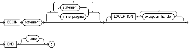 正文部分必须包含BEGIN语句,然后是一个或多个语句(最后一个是强制的),然后是可选的异常块,然后是强制的END语句,然后是没有<<或>>的可选的name (label),然后是强制分号;E 227