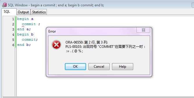 您使用的语法:BEGIN label COMMAND ..... END label是错误的。