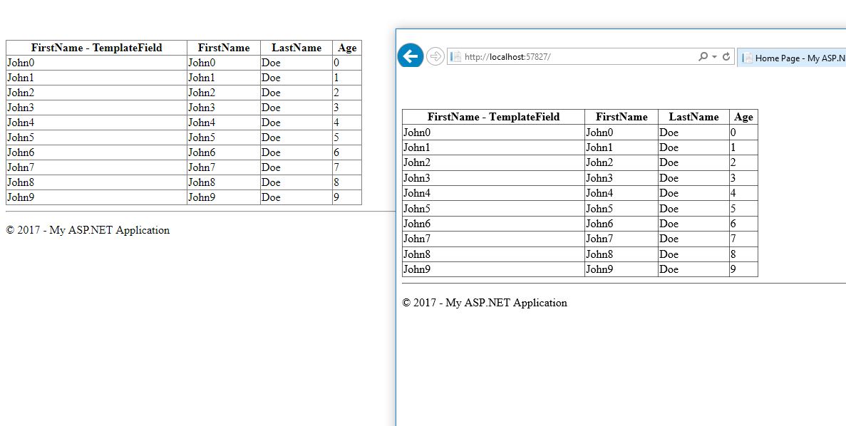 <asp:TemplateField HeaderText="FirstName - TemplateField">