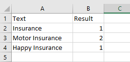 上表显示,我有三套文本,我试图得到那些包含“保险”和“汽车保险”的结果。我知道其中一个会包含另一个,但我希望结果是:
