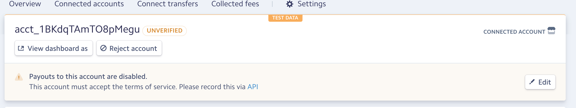 Connected account部分看到创建的帐户。