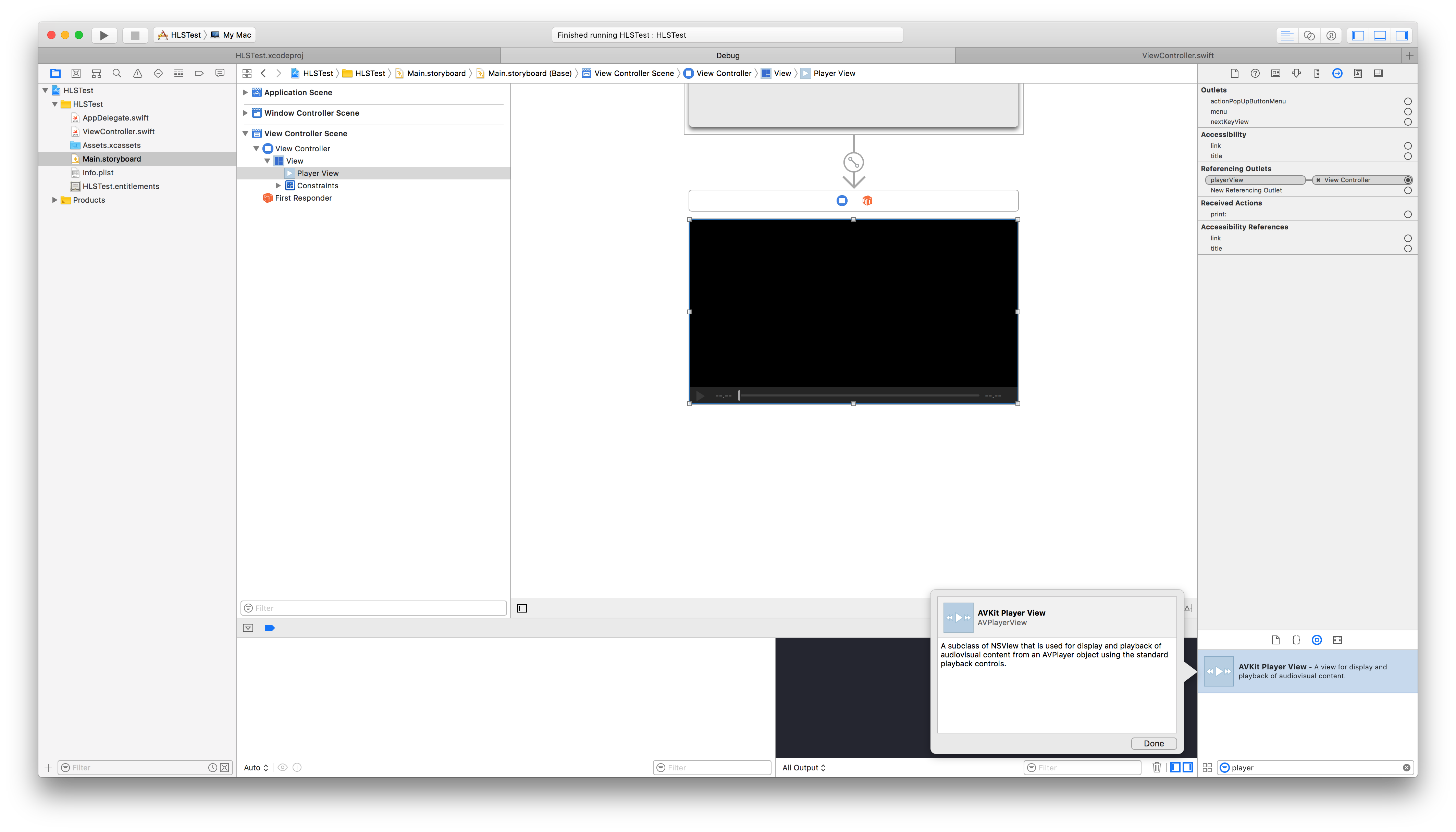 AVPlayerView到您的故事板,并连接到您的ViewControllerViewController更详细