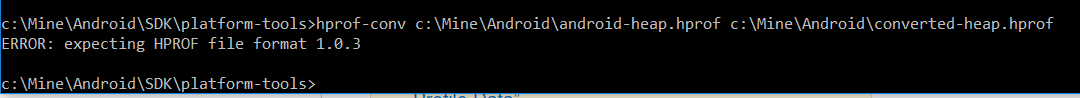 我将堆转储导出为HPROF,并根据.hprof后缀文档保存它。当我运行hprof-conv命令时,会发生错误: