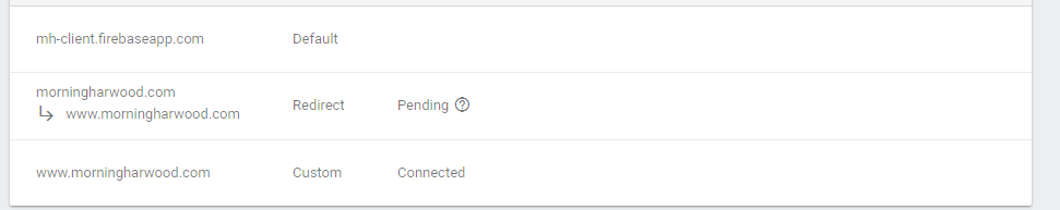 正如您所建议的,使用重定向将基本域的所有用户指向www变体应该有效,而Firebase将自动将HTTP流量重定向到HTTPS。
