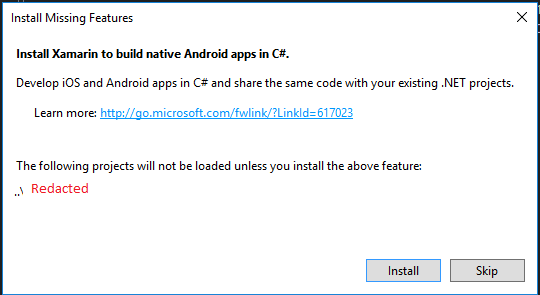 安装缺失功能 安装Xamarin,在C#中构建本地Android应用程序。
