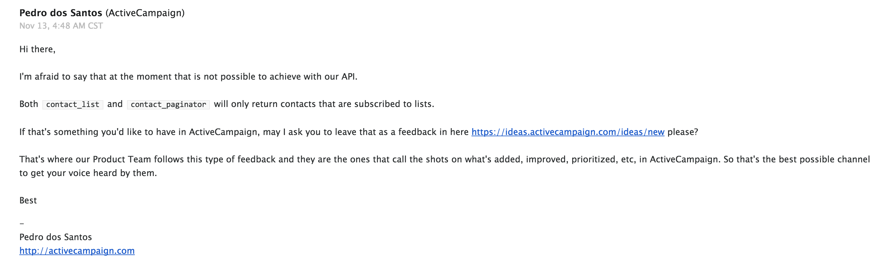 这是ActiveCampaign的回复