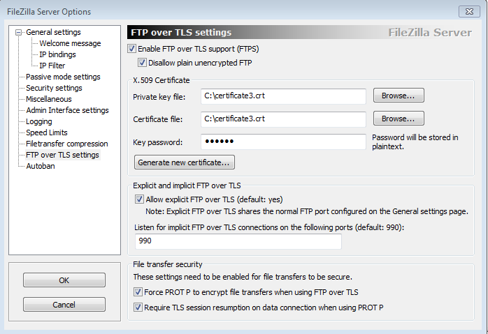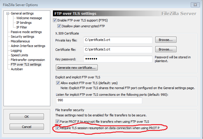 FileZilla FTP服务器是FTP服务器之一,它要求客户端重用来自FTP控制连接的TLS/SSL会话,用于数据连接: