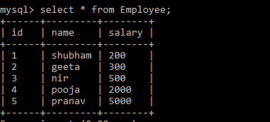 | 1 | shubham | 200 |
