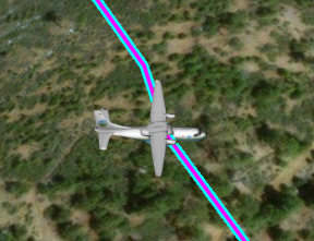 });如果运行代码,您可以看到飞机的中心点是如何跟随轨迹的,但是它的航向与其不对齐,从而给出了飞行应该是什么样子的错误说明: