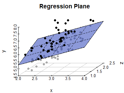 main = "Regression Plane", grid = TRUE, box = FALSE,