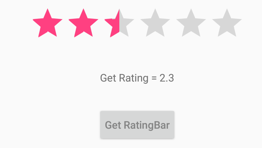 拉廷巴步长有一些特性。这只不过是提高RatingBar收视率的一个因素。如果您希望将评级显示为3.5或4.5,则可以使用stepSize作为0.5。在这种情况下,您想要3.1或4.3这样的收视率,您可以拥有0.1的stepSize。