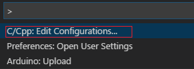 这将打开/创建c_cpp_properties.json文件,将Arduino包的路径添加到包含路径中: