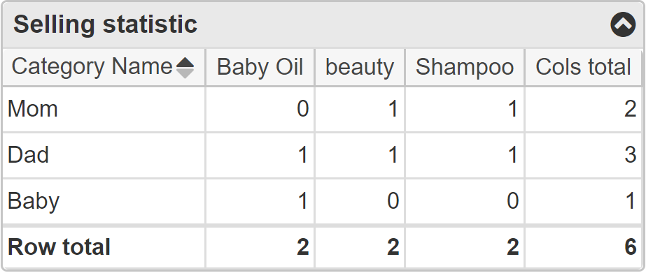 { dataName: "CategoryName", label: "Category Name", sortorder: "desc", footerText: "Row total" },